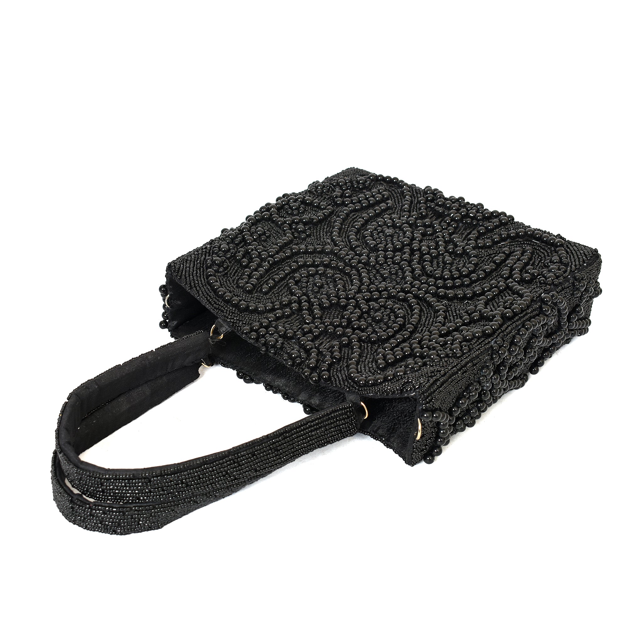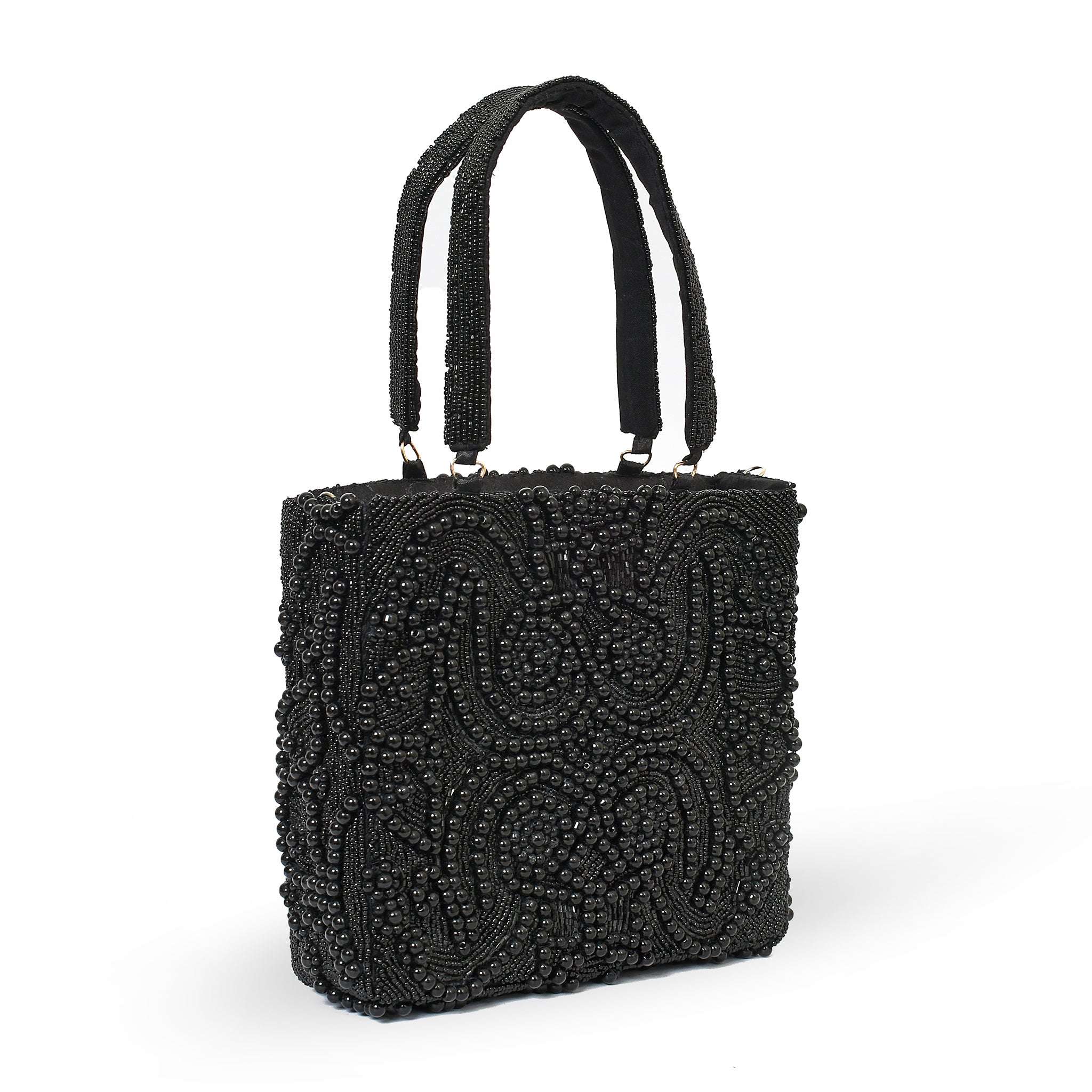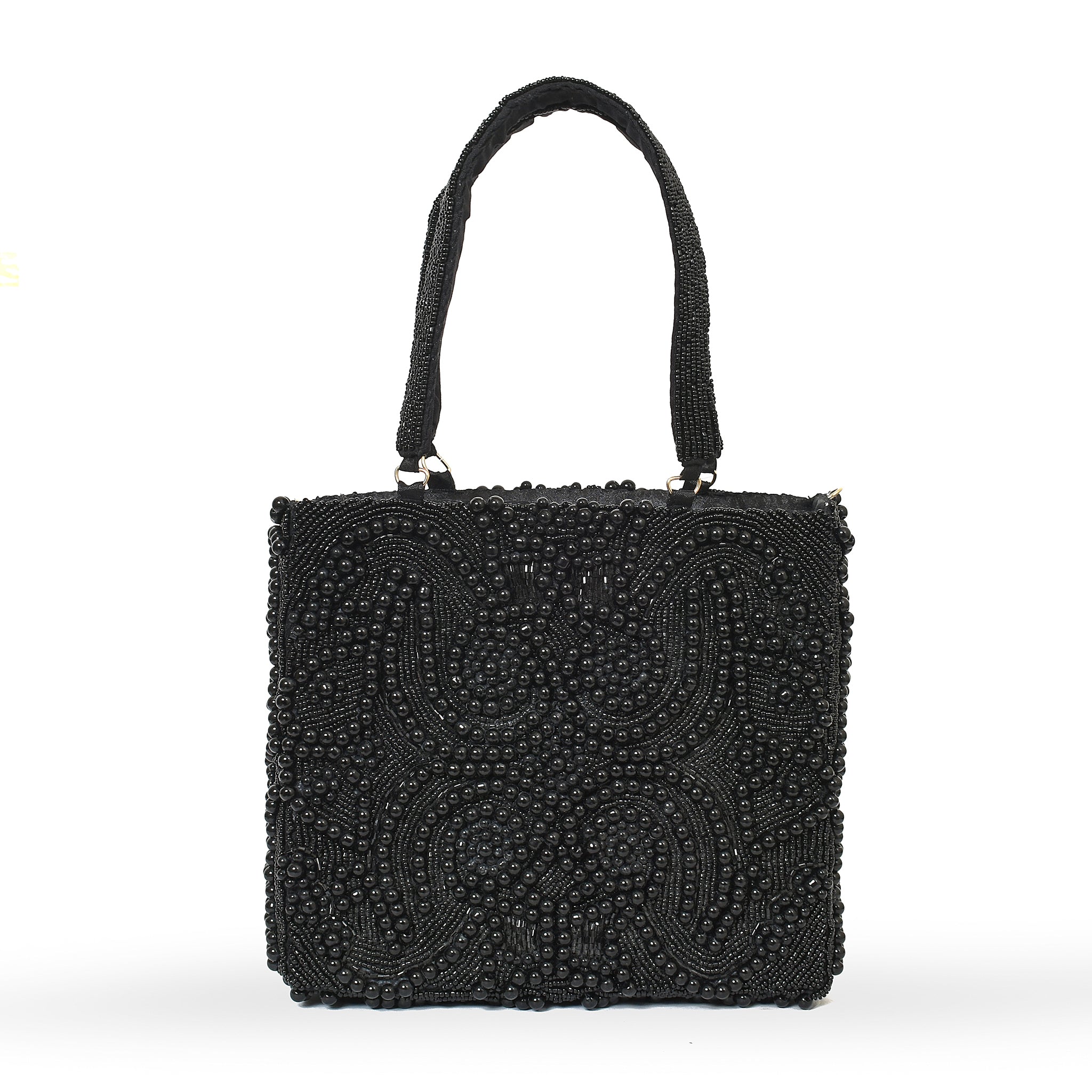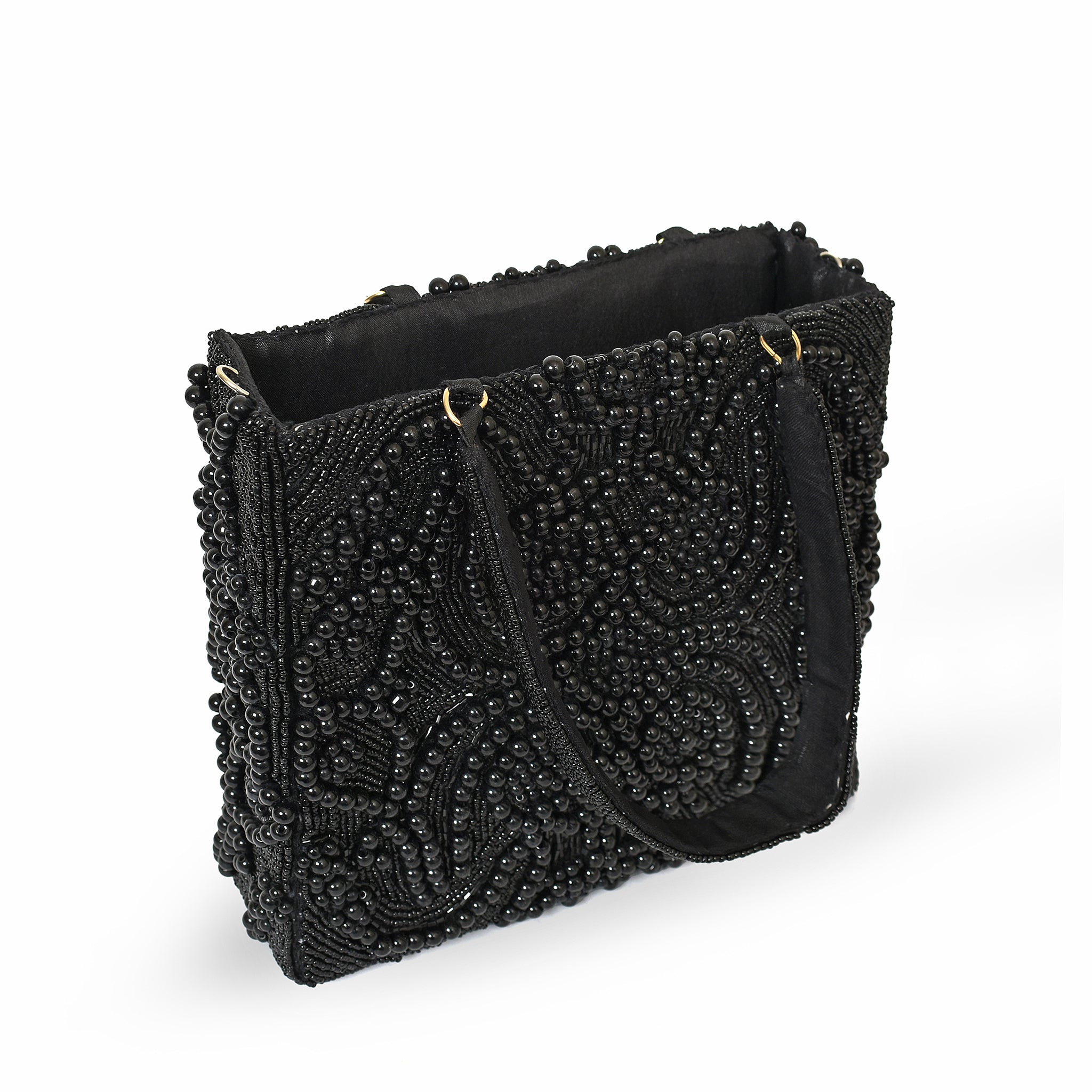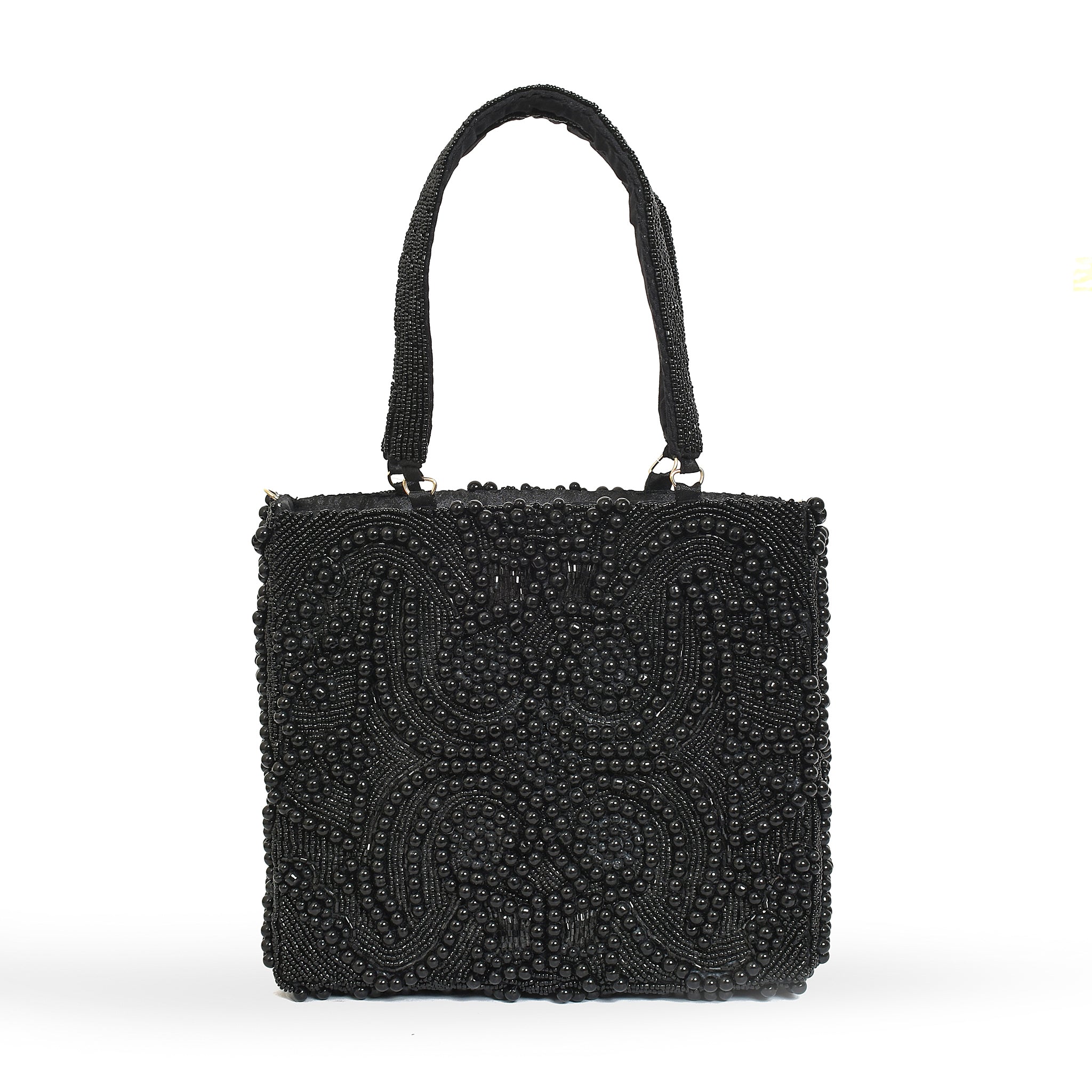 Crafted with elegance and precision, this luxurious black handbag features exquisite black pearl and bead detailing, offering a timeless look that complements any outfit. Whether you prefer to carry it as a hand-held or crossbody bag, this versatile accessory adapts to your style with ease.