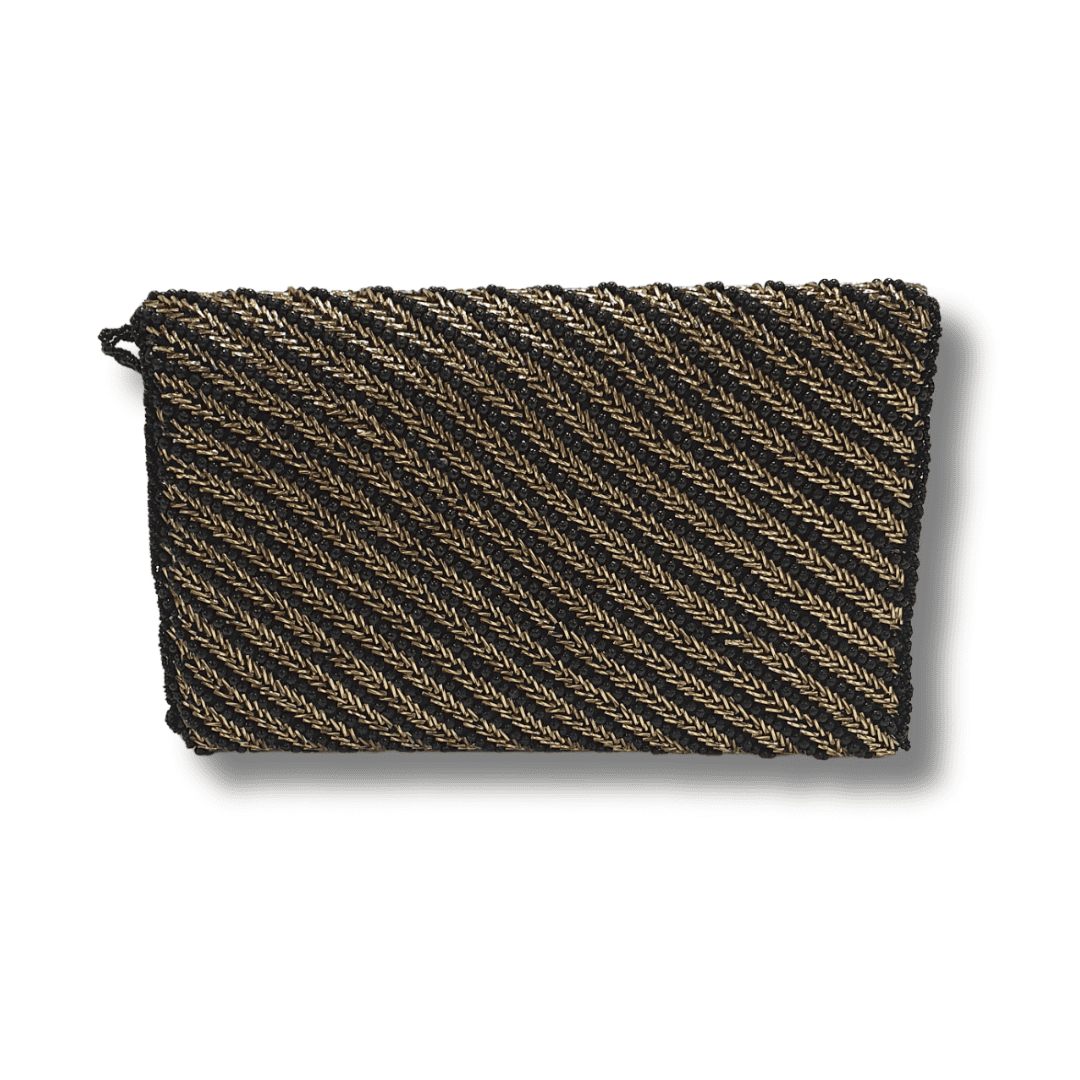 This elegantly designed black and gold clutch is the perfect accessory for your next special event. Handcrafted with precision, it features a sleek, matte black exterior with intricate gold detailing, making it a luxurious statement piece. Whether you're attending a formal dinner, a wedding, or a night out, this handmade clutch will elevate your outfit with its stylish combination of bold black and glamorous gold accents. The perfect blend of sophistication and modernity, it's the evening bag you’ve been waiting for.
