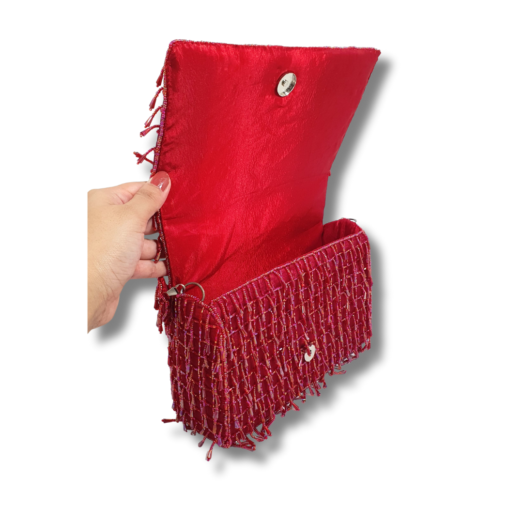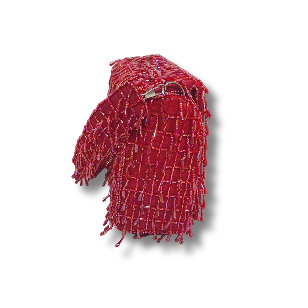 Step into a world of luxury and sophistication with the Luxe Gold Beaded Bag, an exquisite accessory that dazzles from every angle. Adorned with hanging golden beads on all sides, this bag creates a flowing, textured effect that catches the light with every movement. The beading is intricately arranged to form a dynamic, luxurious pattern that exudes elegance and glamour. Perfect for evening events, weddings, or upscale occasions, this bag is designed to make a bold yet refined statement. The Luxe Gold Beaded Bag by Lilaycs combines the timeless allure of gold with stunning craftsmanship, offering both beauty and functionality in one breathtaking piece.